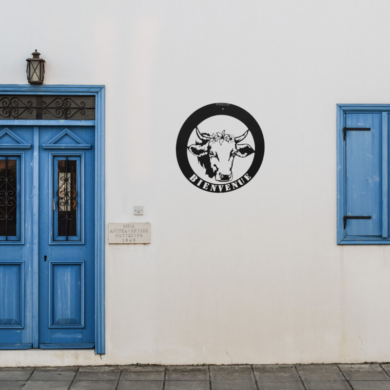 WANDDEKORATION AUS METALL - KUH UND "BIENVENUE"