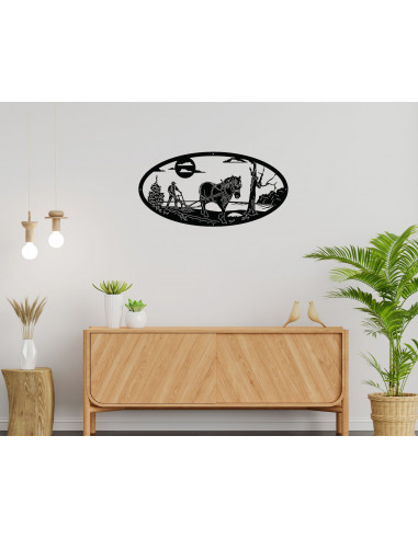 Technische Daten: Material: Stahl – Mattschwarze Pulverbeschichtung Abmessungen: Ca. 60 x 45 cm, 3 mm Dicke, Gewicht etwa 1 kg Verwendung: Geeignet für den Innen- und Außenbereich, einfach zu installieren dank integrierter Befestigungslöcher Fertigung: Jede Metall-Wanddekoration wird in...