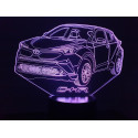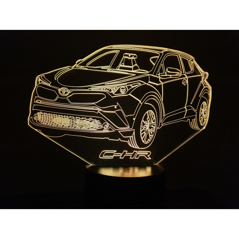 The package includes: 1 base (with slots for 3 AA batteries not supplied); 1 acrylic plate with engraved design; a usb power cable. drawing dimensions: 195mm in its largest dimension.