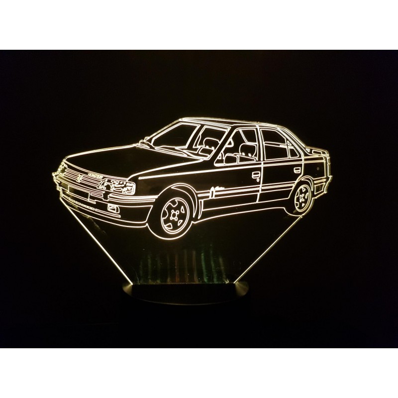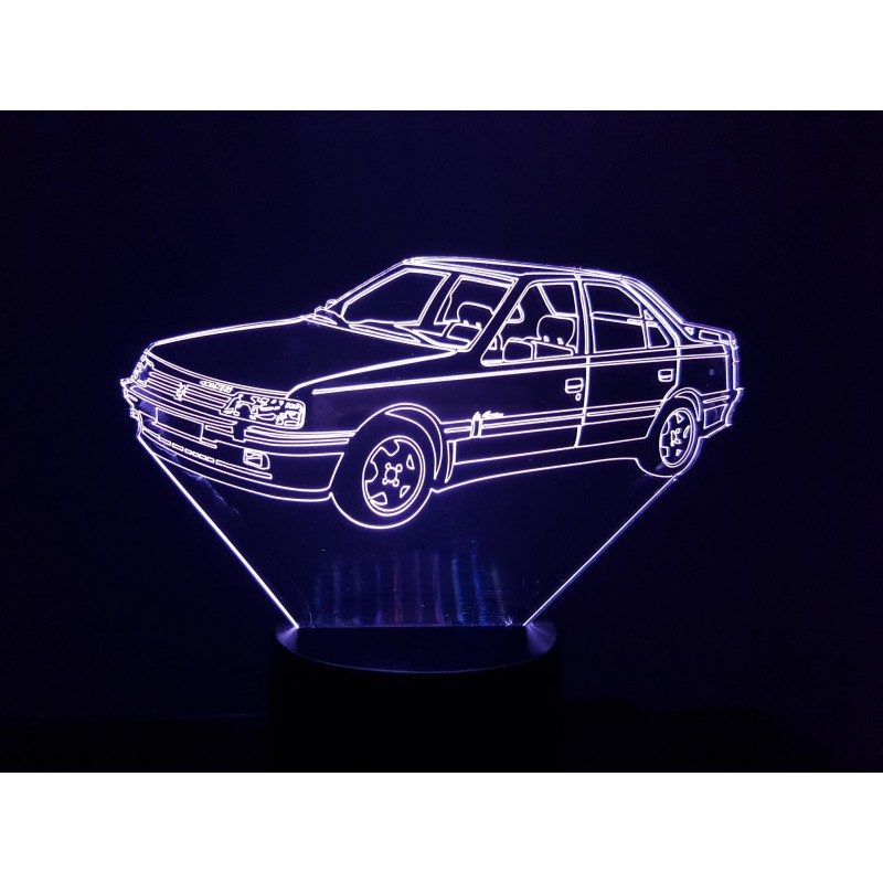 The package includes: 1 base (with slots for 3 AA batteries not supplied); 1 acrylic plate with engraved design; a usb power cable. drawing dimensions: 195mm in its largest dimension.