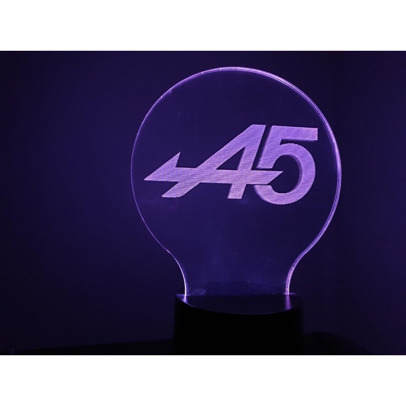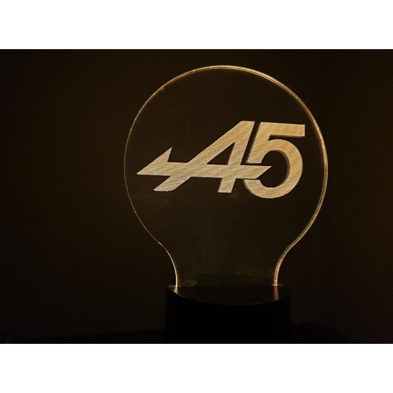 The package includes: 1 base (with slots for 3 AA batteries not supplied); 1 acrylic plate with engraved design; a usb power cable. drawing dimensions: 195mm in its largest dimension.