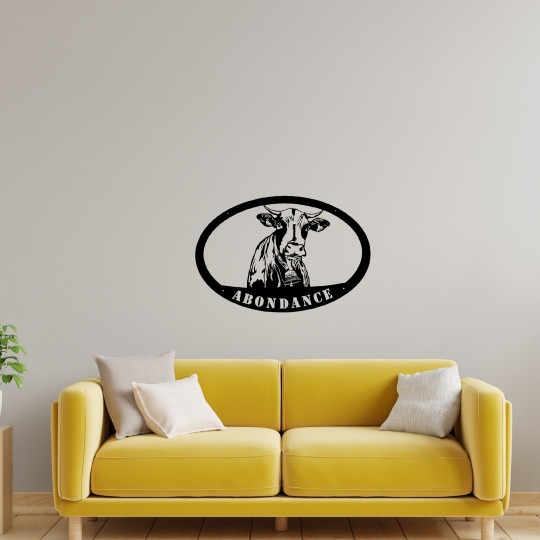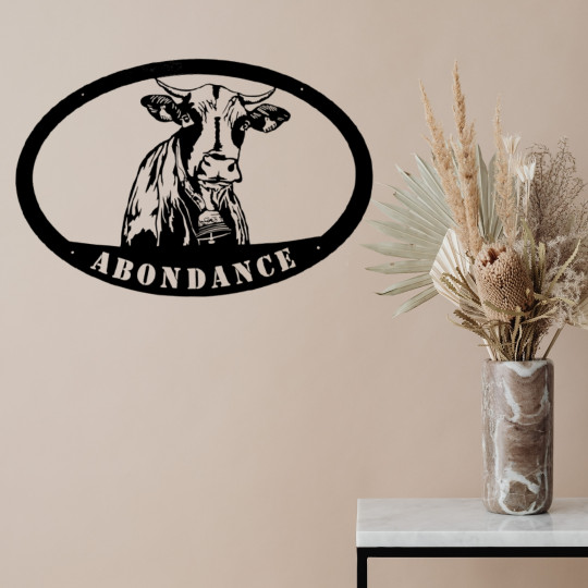 WALL DECORATION in METAL. Pattern: ABONDANCE COW surrounded
