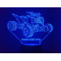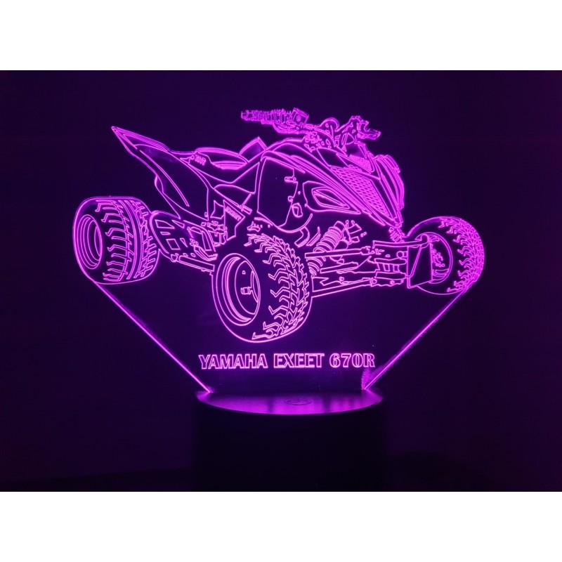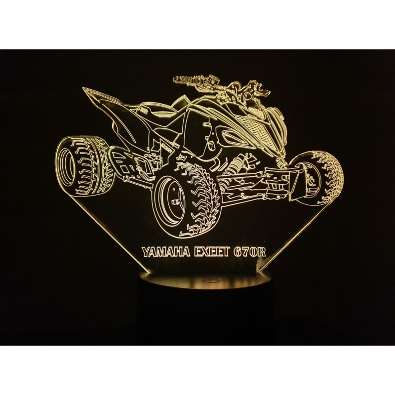 The package includes: 1 base (with slots for 3 AA batteries not supplied); 1 acrylic plate with engraved design; a usb power cable. drawing dimensions: 195mm in its largest dimension.