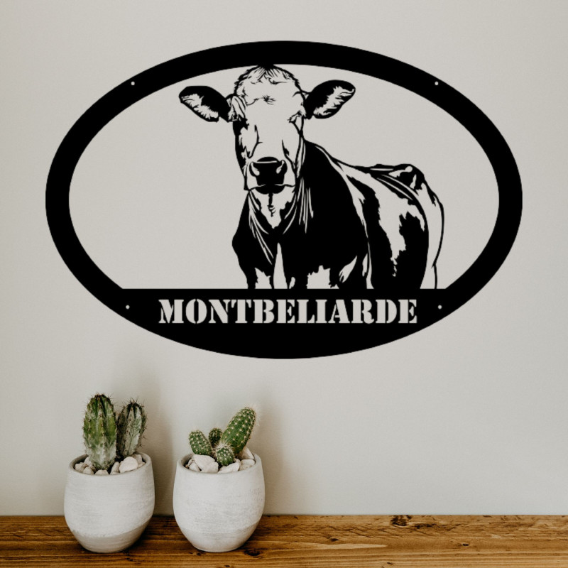 VACHE MONTBELIARDE entourée - DECORATION MURALE en METAL