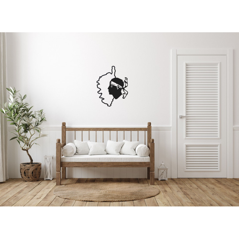 Découvrez cette sublime décoration murale en acier représentant l'île de beauté avec une tête de Maure emblème du peuple Corse. Cette décoration ira parfaitement dans toutes les pièces de votre maison.