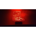 Le colis comprend: 1 embase (avec logements pour 3 piles AA non fournies); 1 plaque acrylique avec dessin gravé; un câble usb d'alimentation. dimensions du dessin: 195mm dans sa plus grande dimension.